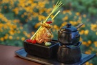В лаундже на открытом воздухе можно попробовать местные и азиатские сорта чая.