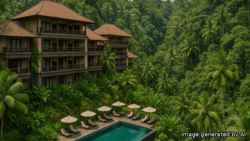 Комплекс построен в современном стиле с использованием темного дерева. Расположен в тропическом лесу на острове Бали, на окраине города Убуд. Отель предлагает панорамный бассейн и wellness-комплекс. Подходит для медитации, йоги и восстановления.