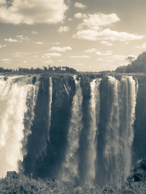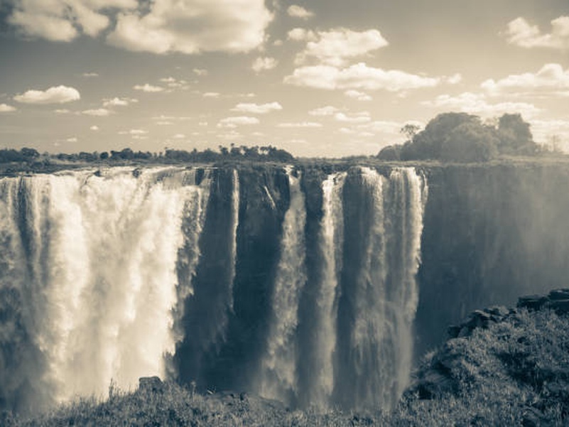 Водопад Виктория расположен на границе двух стран Замбии и Зимбабве, на территории одноименного Национального Парка, в котором обитает множество африканских животных.