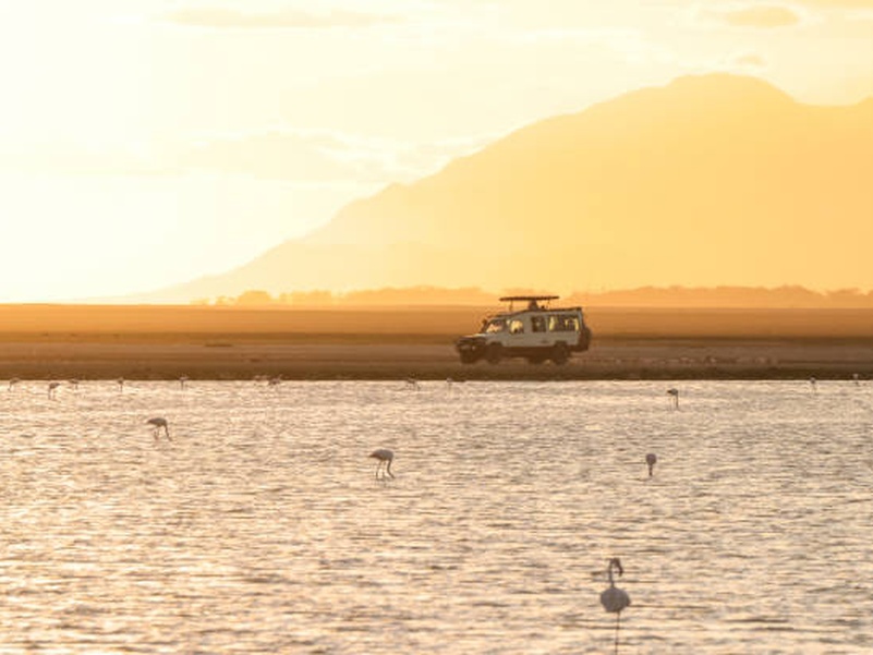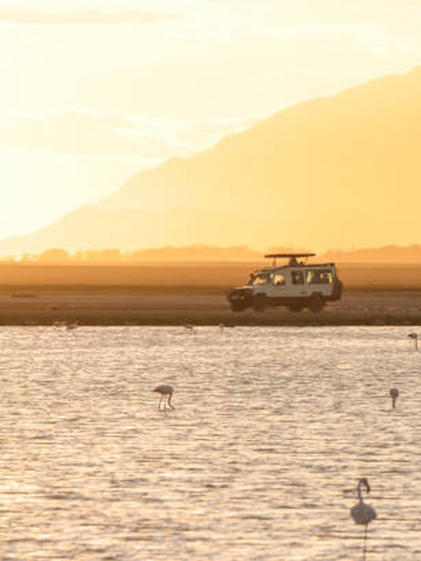 Вечернее сафари на озере Маньяра, главной достопримечательностью которого являются львы, лазающие по веткам акаций, а также озеро с фламинго.