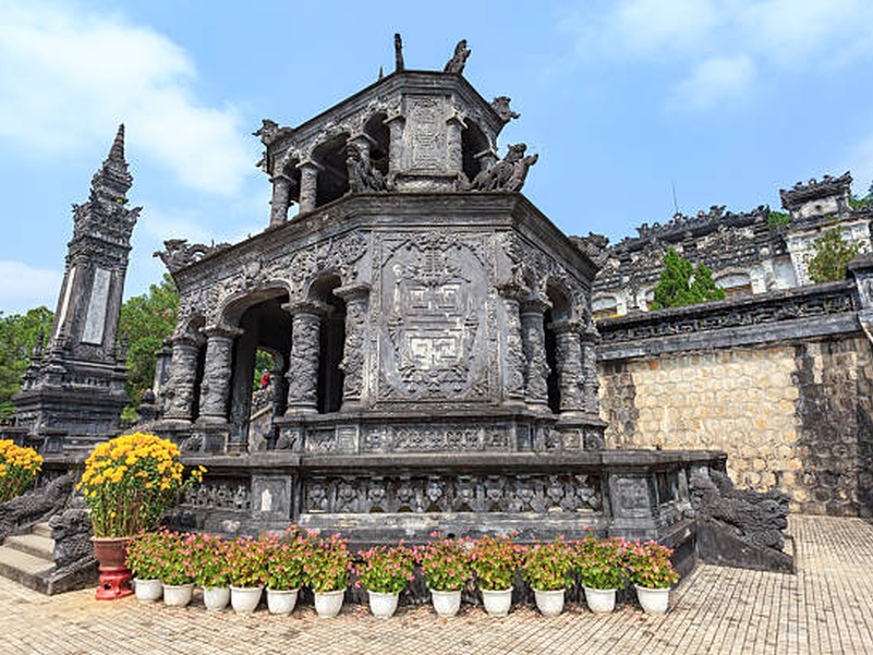 Посещение величественной гробницы Кхай Диня, известной своим уникальным сочетанием вьетнамской и европейской архитектуры, затем — посещение гробницы Ты Дык, поэтичного и красиво оформленного императорского усыпальника, расположенного среди сосновых лесов и тихих озёр.Обед во время экскурсии.